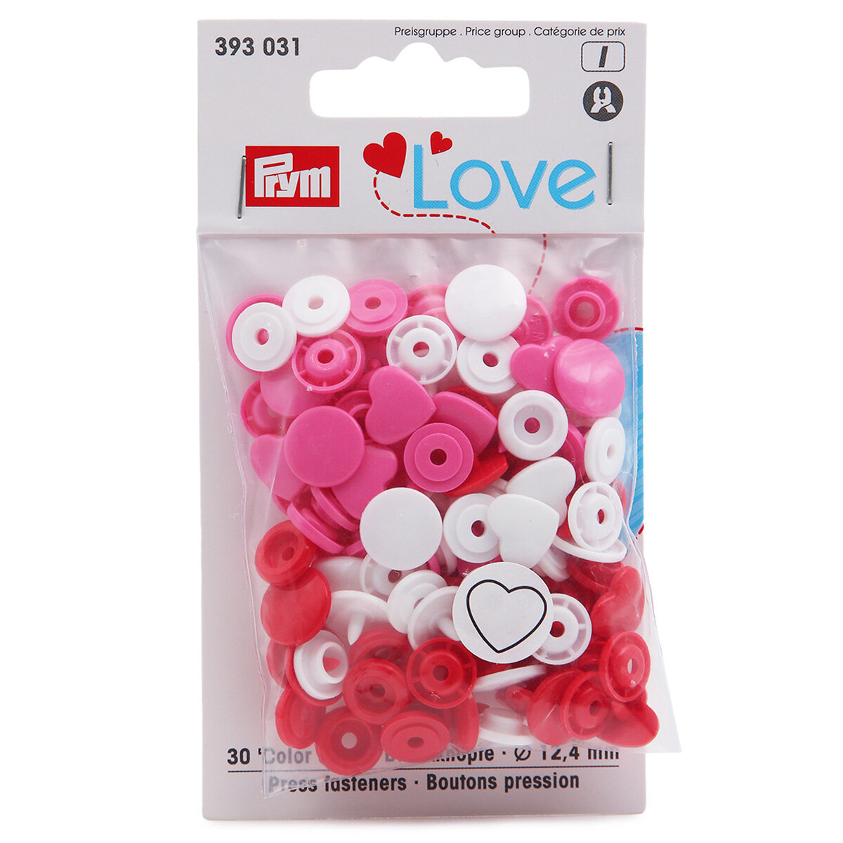 PRYM 393031 Kнопки 'Сердце' Color Snaps Prym Love, красный/белый/розовый, 12мм, 30шт