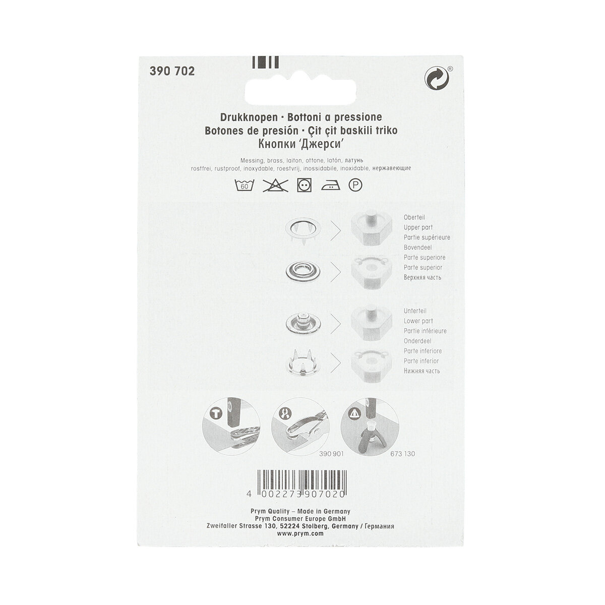 390700 PRYM love Кнопки Джерси Color + инструмент для установки кнопок 8мм, латунь