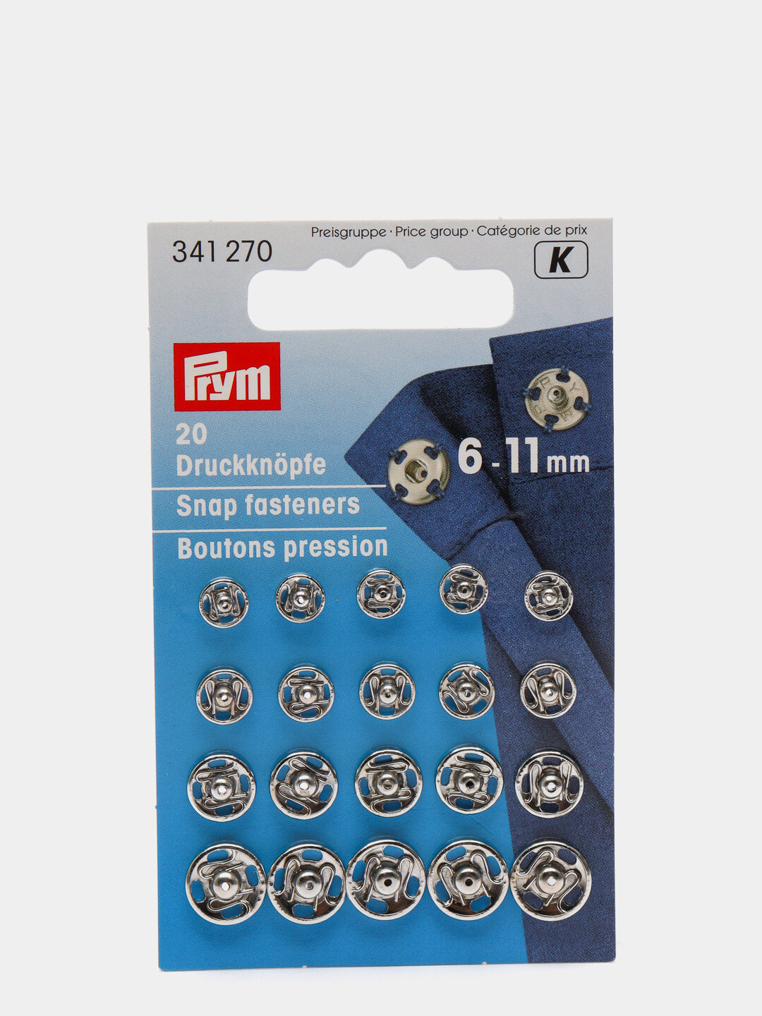 341270 Пришивные кнопки 6-11мм (латунь) упак(20шт), серебристый Prym