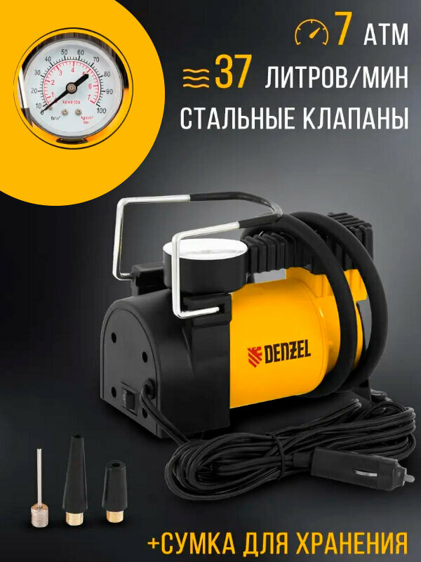 Автомобильный компрессор Denzel AC-37 37 л/мин 7 атм желтый/черный