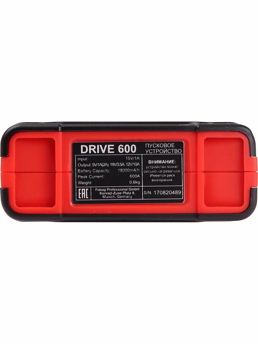 Пусковое устройство DRIVE 600 (ток запуска 600А_емкость аккумулятора 18000 мАч)**** FUBAG, шт Fubag