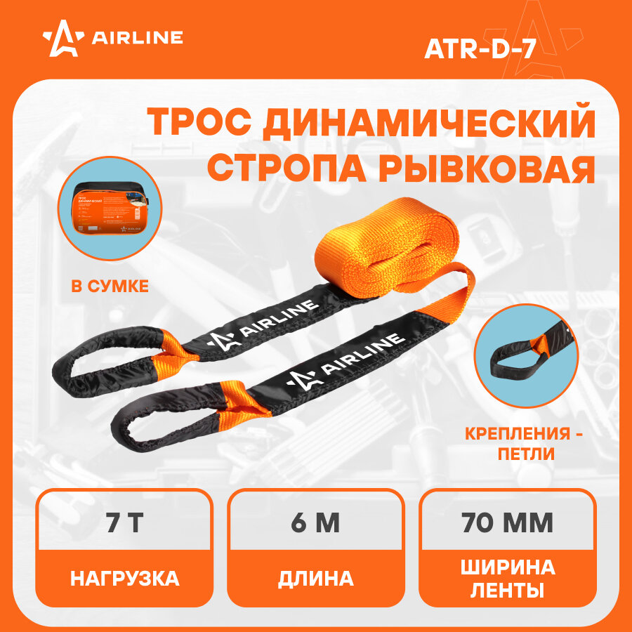Airline ATR-D-7 (ATRD7) трос динамический 7 т, 6 м + сумка (стропа рывковая) (atr-d-7)
