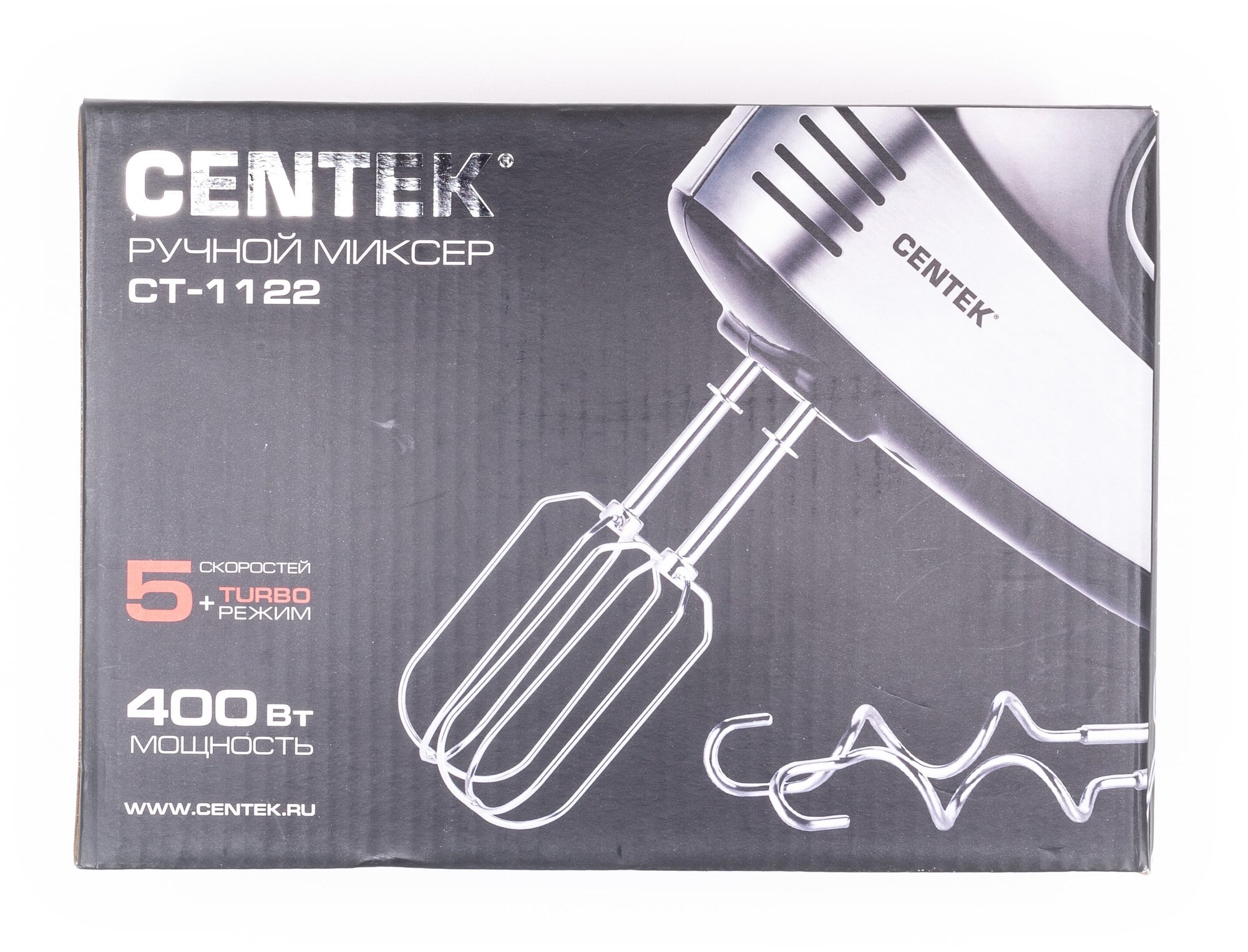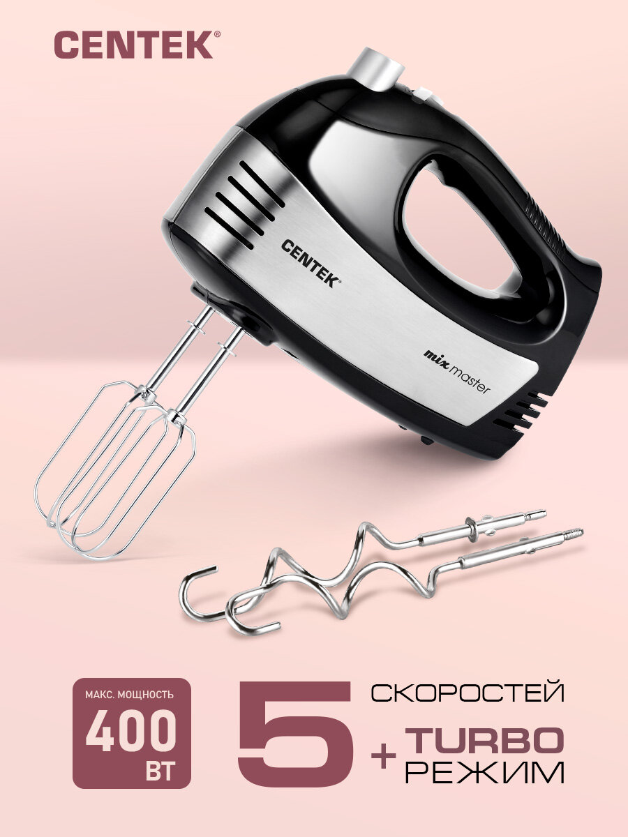 Миксер кухонный CENTEK CT-1122: черн-сталь 400Вт, 5 скоростей +турбо, взбивание-замешивание