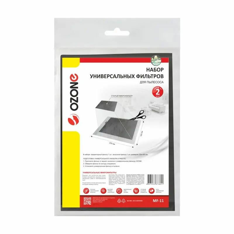 Набор универсальных микрофильтров MF-11 Ozone предмоторный и выпускной для пылесоса, 230х160 1049587