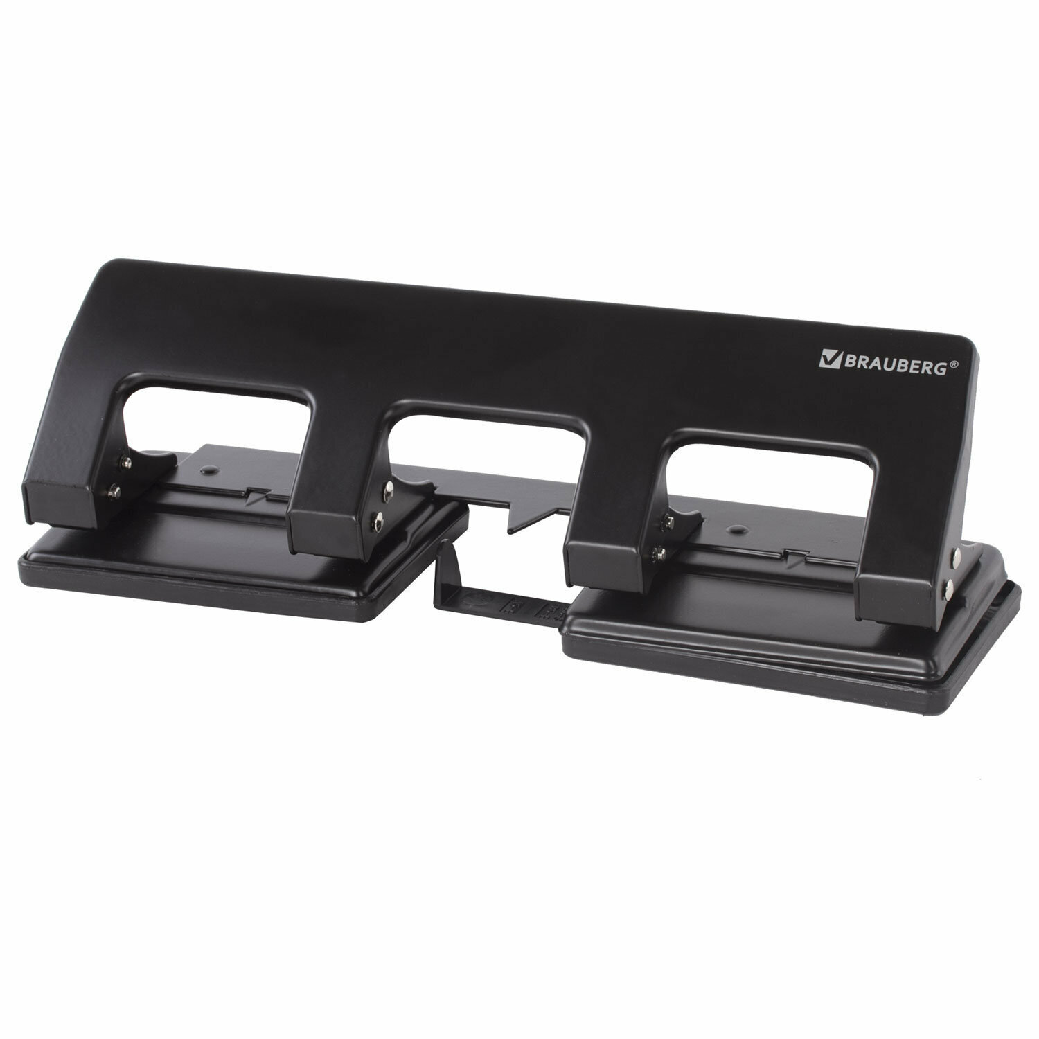 Дырокол BRAUBERG, на 4 отверстия, средний, на 15 листов, черный
