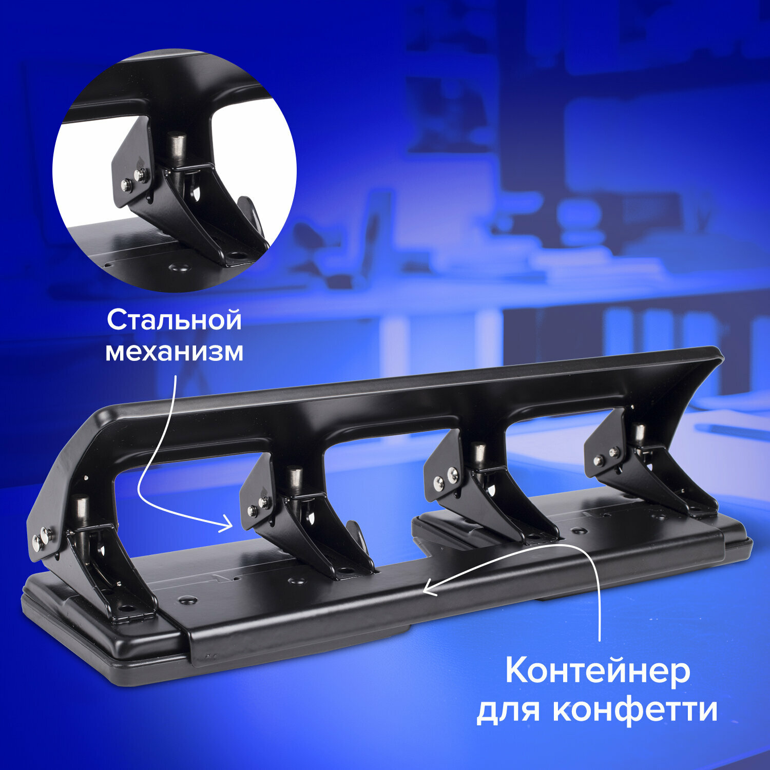 Дырокол BRAUBERG (брауберг) "СonstruСtor", на 4 отверстия, средний, на 15 листов, черный