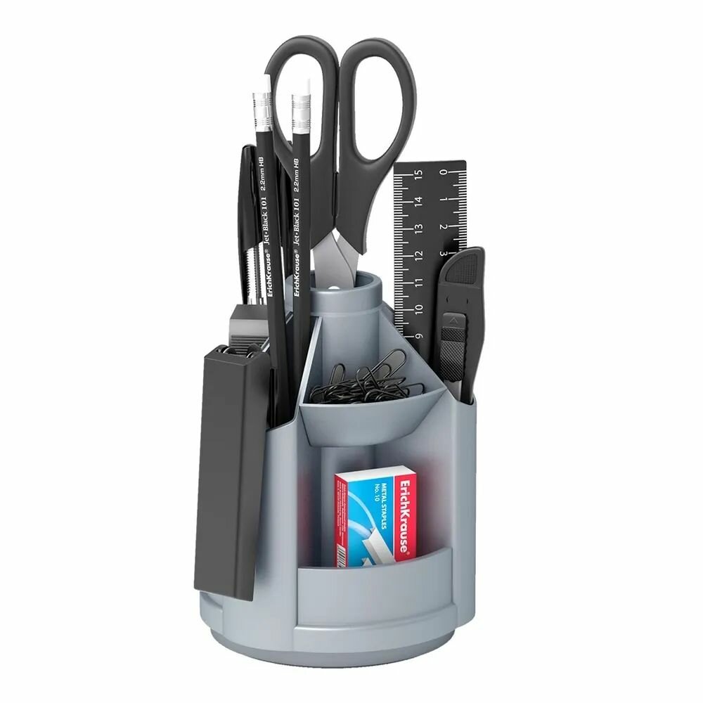 Настольный набор Erich Krause на вращающейся подставке, Mini Desk, серый (12516)