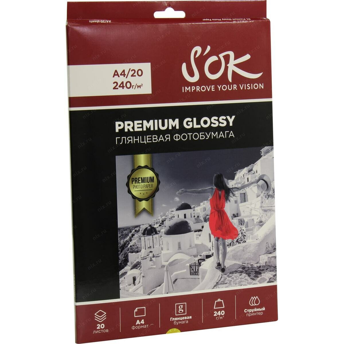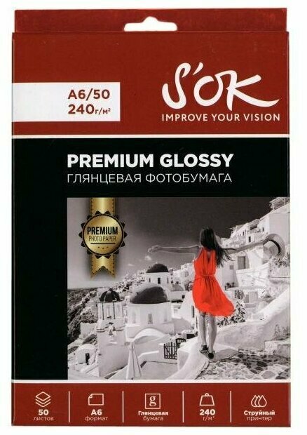 Фотобумага S’ok Premium S'OK глянцевая, формат А4, плотность 240г/м2, 20 листов