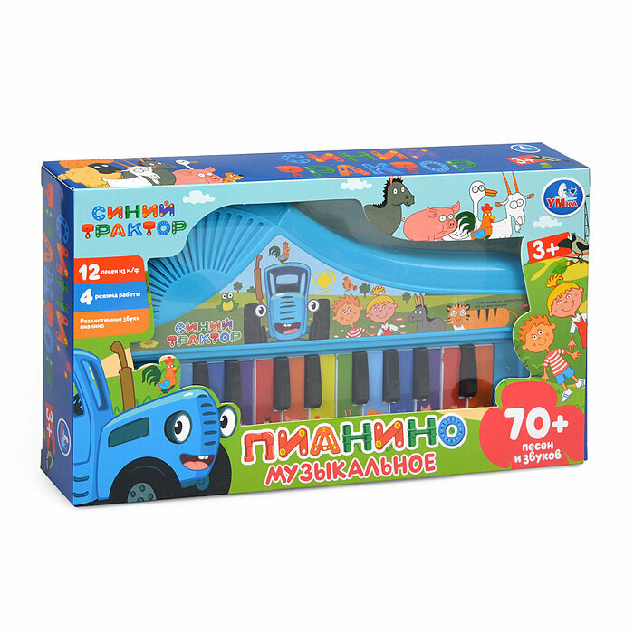 Музыкальное пианино "Синий трактор" (70 песен и звуков) в коробке