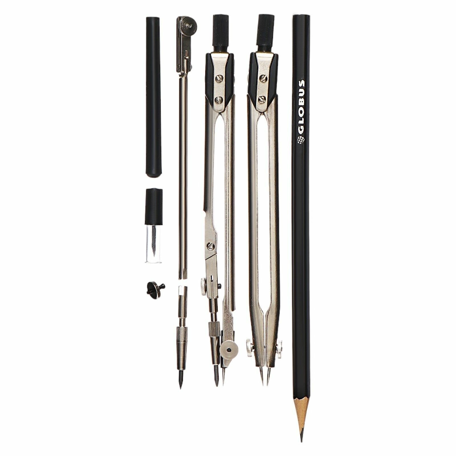 Globus Набор чертежный 8 предметов (НЧ-8-Ш-03/НЧ-8-70-60), серебристый/черный ( с измерителем)