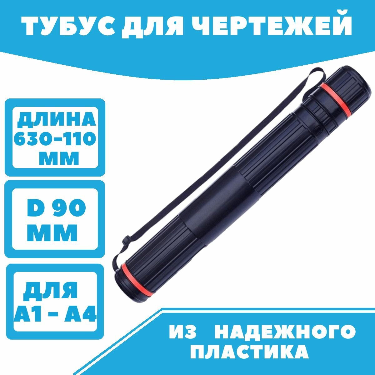 Тубус А0 телескопический на ремне, 90 мм., черный