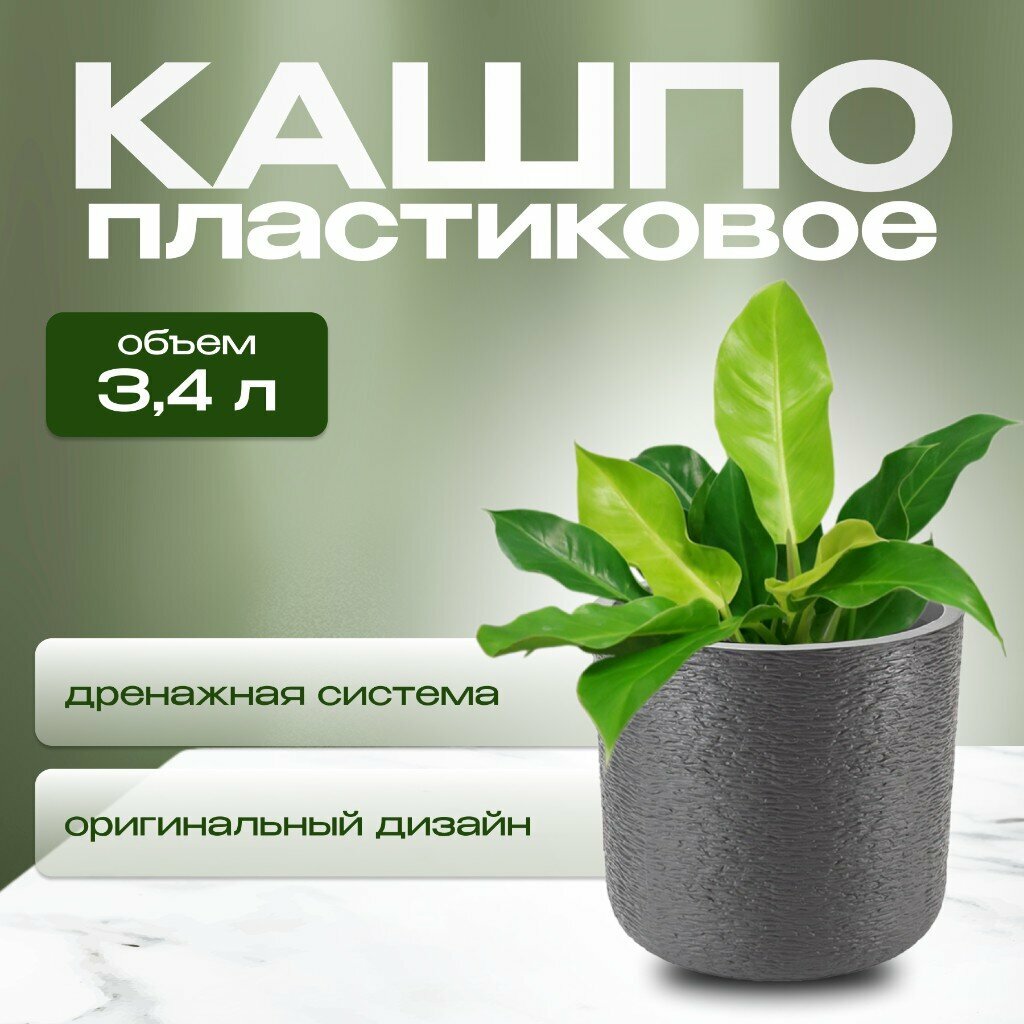 Кашпо сланец D200мм 3,4л с вставкой Графитовый