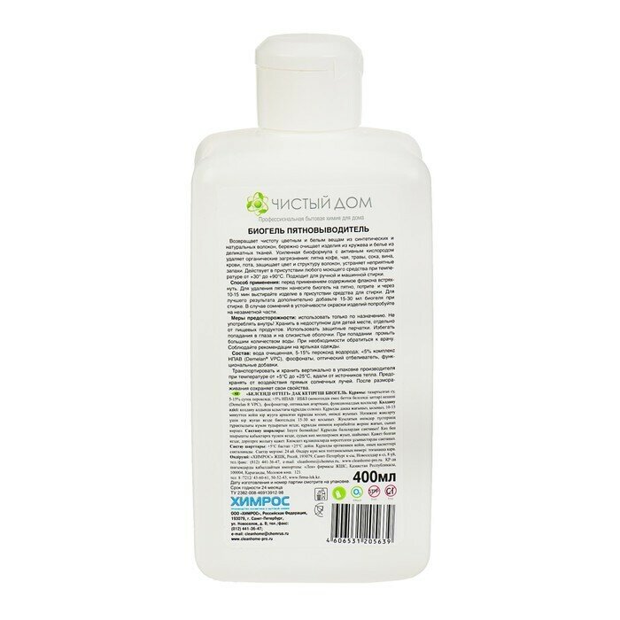 Пятновыводитель CLEAN HOME Биогель, активный кислород 400мл 4606531205639