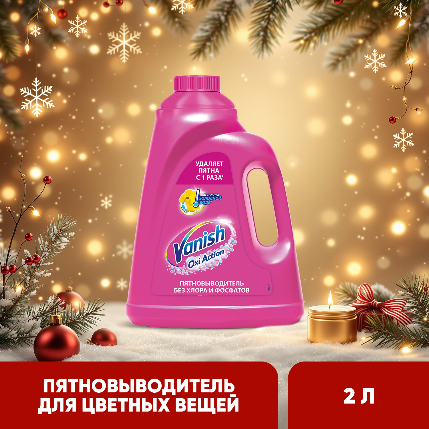 Кислородный жидкий пятновыводитель без хлора Vanish Oxi Action для цветных тканей, 2 л
