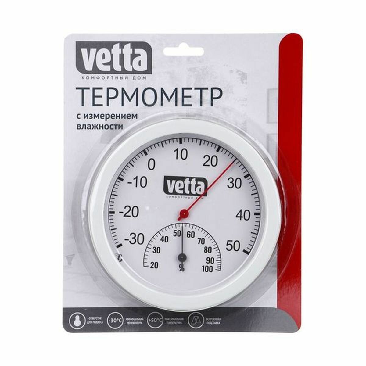 Купить Термометр комнатный круглый VETTA, измерение влажности воздуха, блистер, 12,5 см, пластик, металл