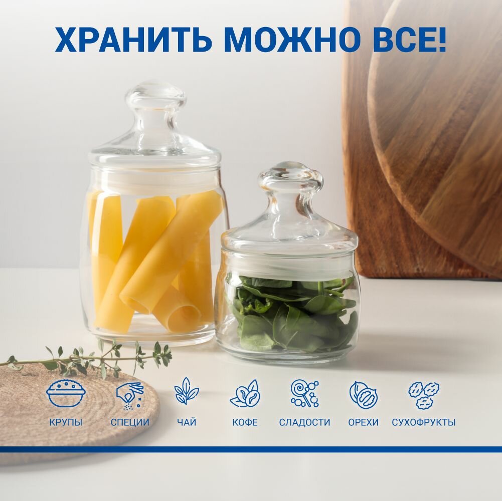 Банка для сыпучих продуктов Pasabahce / Пашабахче Cesni с крышкой, стекло прозрачное 0.42л / посуда для кухни