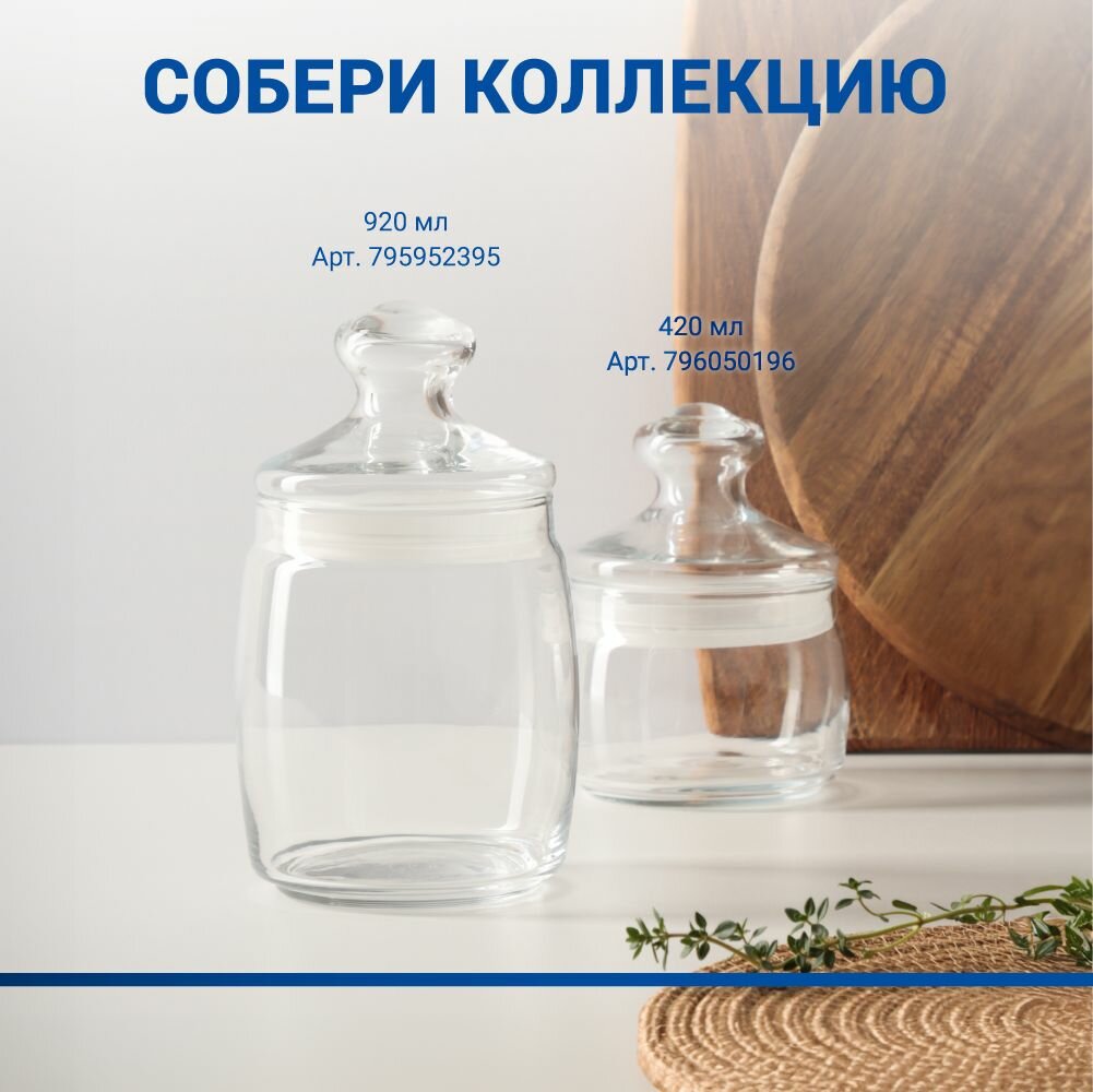 Банка стеклянная с крышкой 420 мл для сыпучих продуктов, Pasabahce