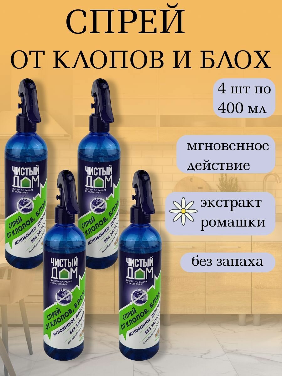 Средство от клопов И блох "чистый ДОМ" спрей С экстрактом ромашки 400 МЛ (1/24)