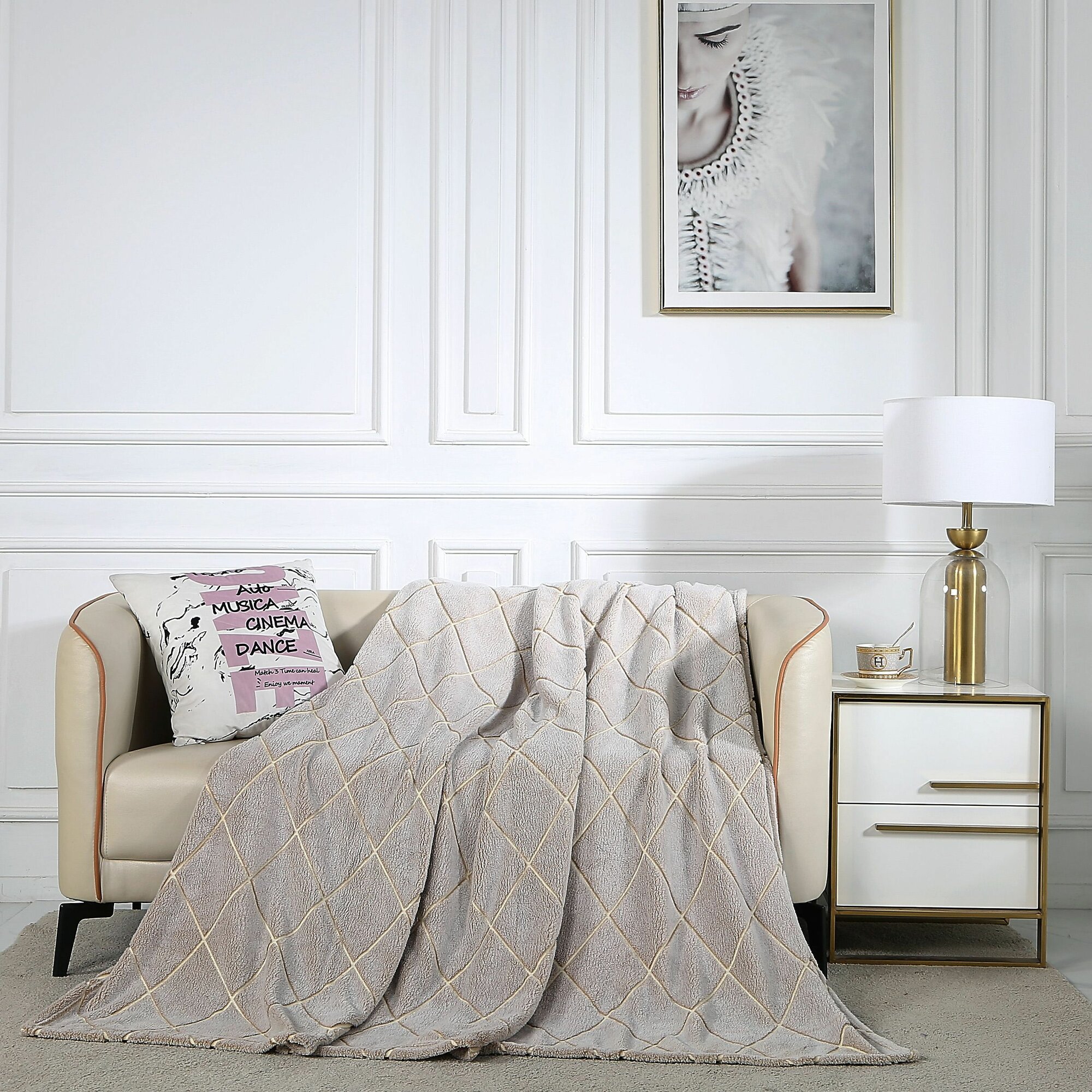 Плед из велсофта Калифорния 191-pf Cleo (кремовый-серый), 200x220