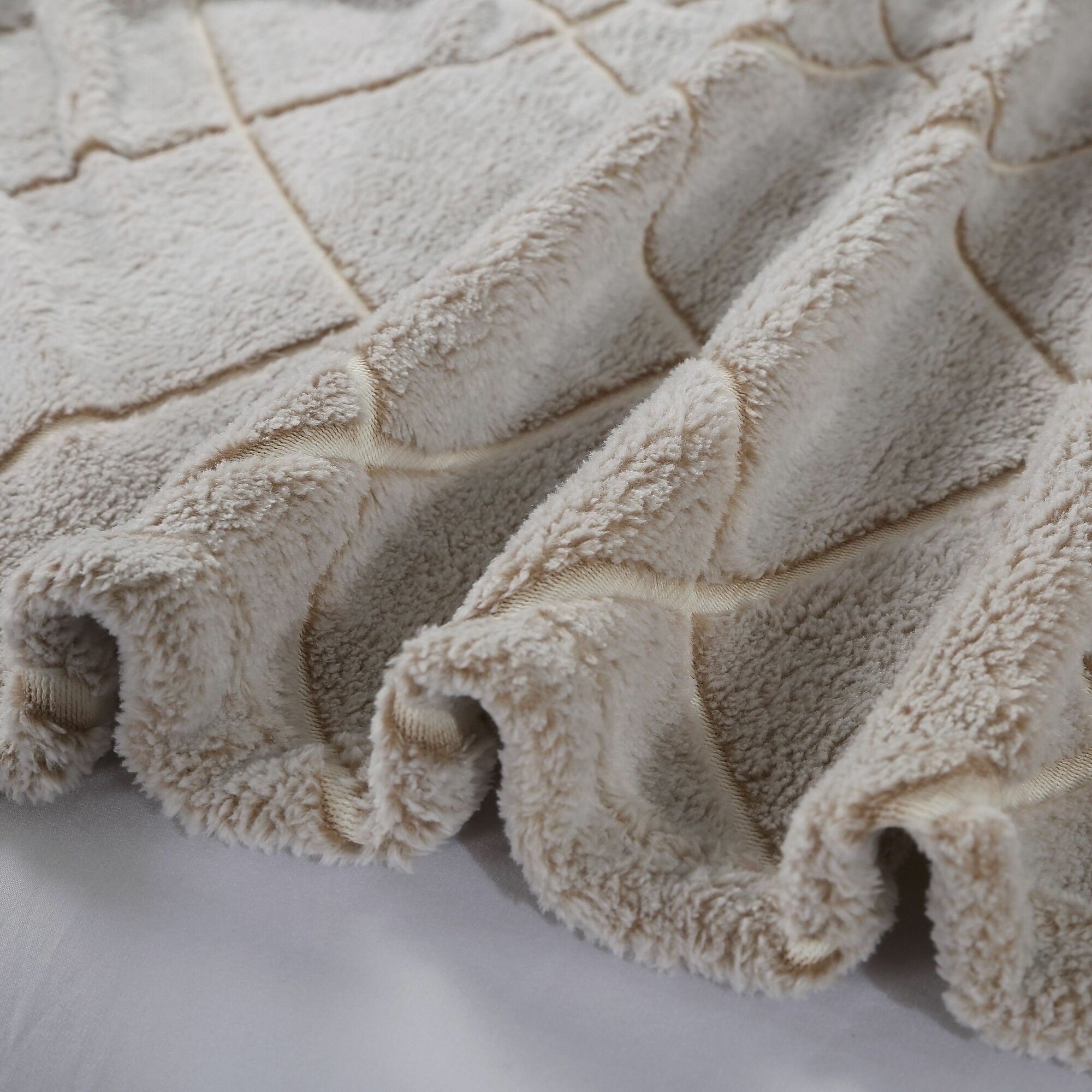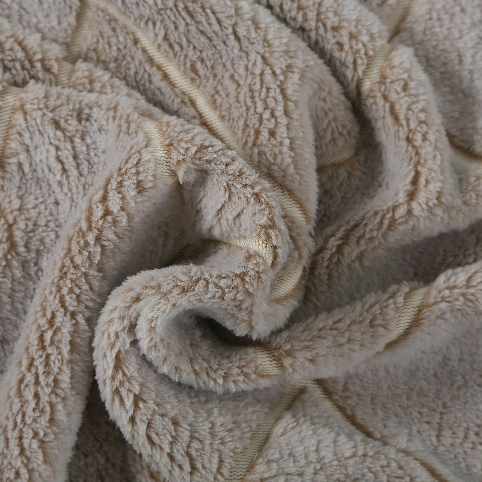 Плед полуторный 150х200 однотонный бежевый, покрывало на кровать и диван Cleo Parma, пушистый с узорами, флисовый, велсофт