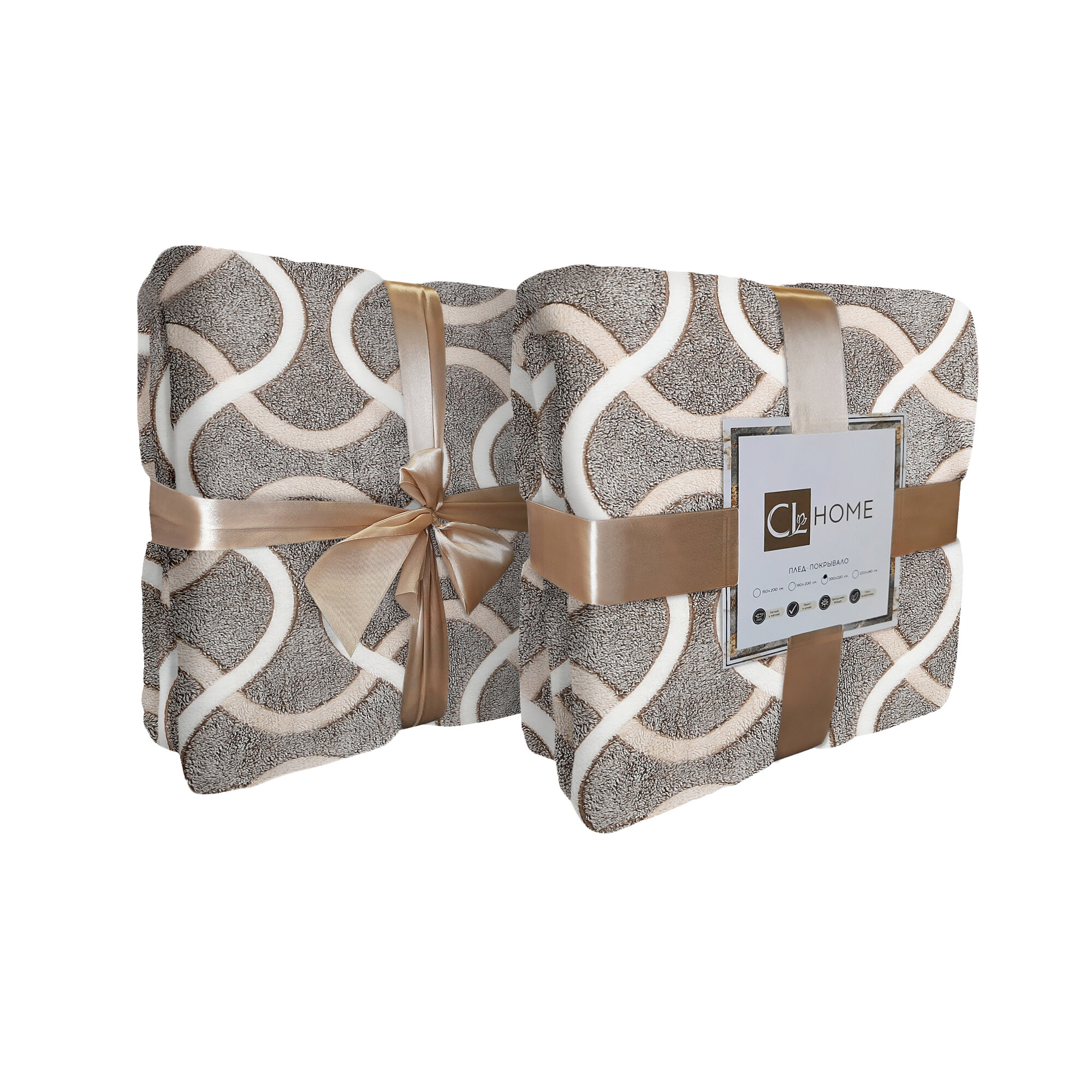 Плед 180х200 2-спальный Cleo Parma светлое какао, покрывало на кровать и диван пушистое с рисунком, велсофт