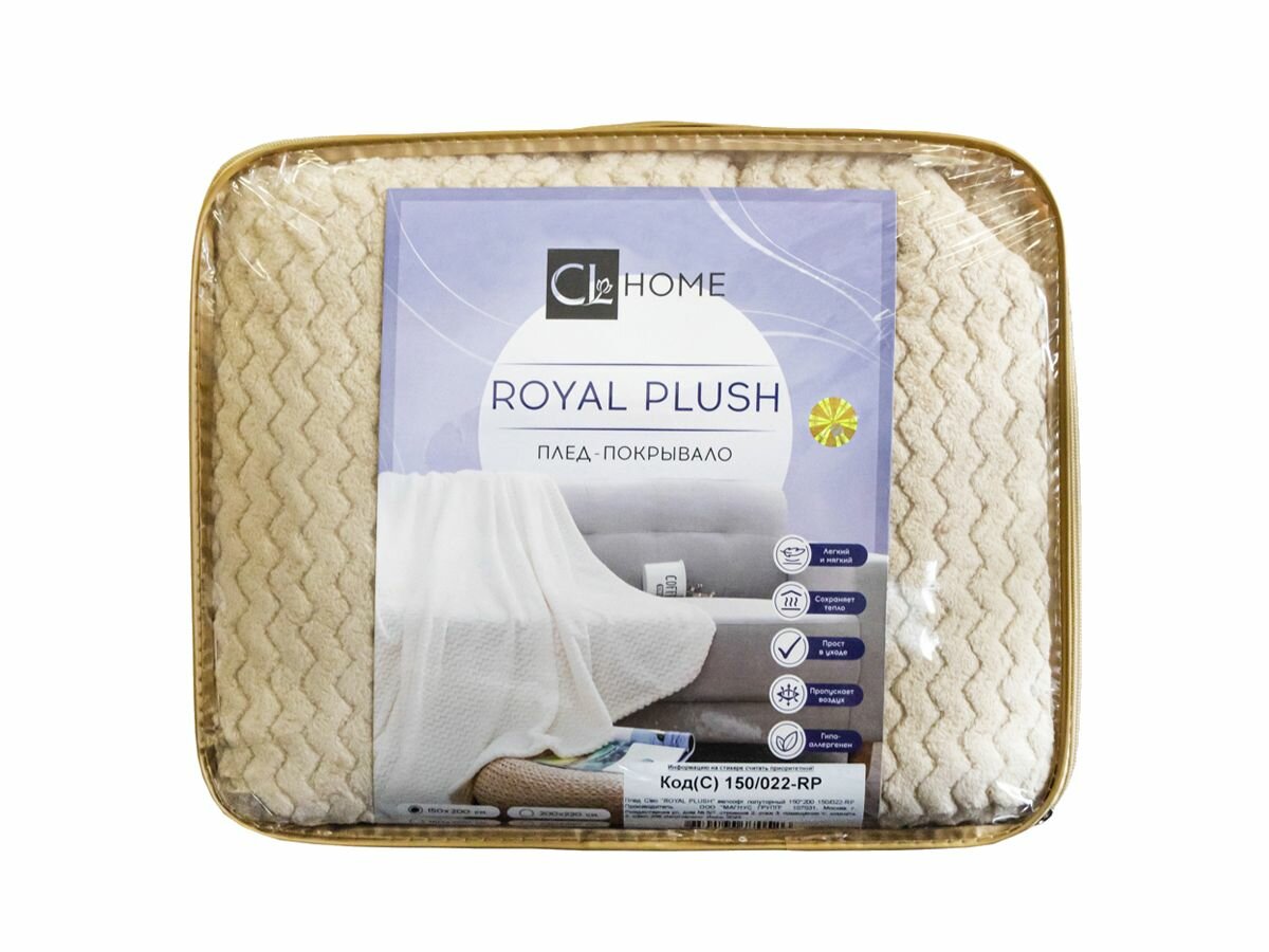 Купить Плед двуспальный 180х200 однотонный кремовый, покрывало на кровать и диван Cleo Royal Plush, пушистый, флисовый, велсофт