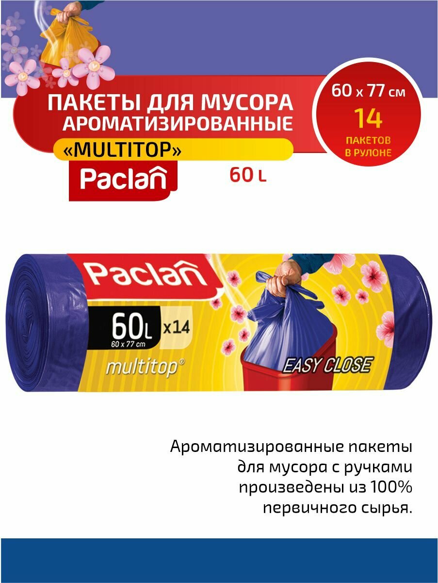 Мешки для мусора PACLAN с ушками, Multitop Aroma, 60 л, 14 штук (136891/136890)