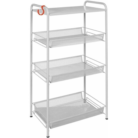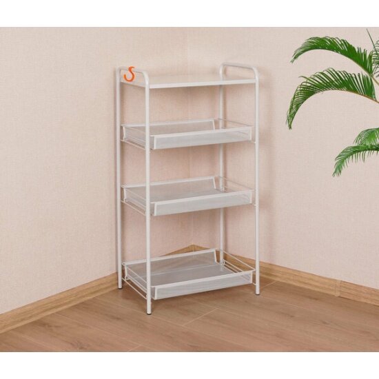| Плюсы: | Очень лёгкая в сборке,при этом устойчивая. Колесики скользят хорошо,легко передвигается. Полочки в мелкую сеточку. Сделана аккуратно. Идеально подошла для мелочей,косметики,расчесок. |