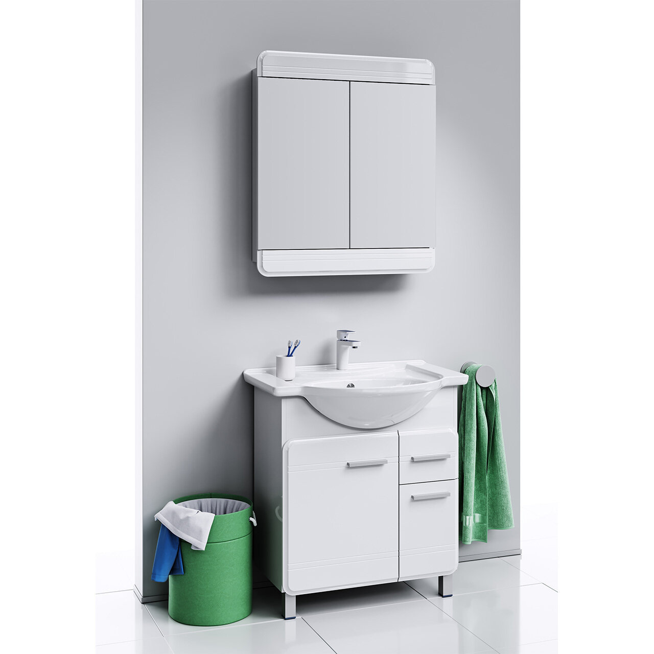 Тумба под умывальник Aqwella Корсика Т7м 75 напольная, белый KOR0107