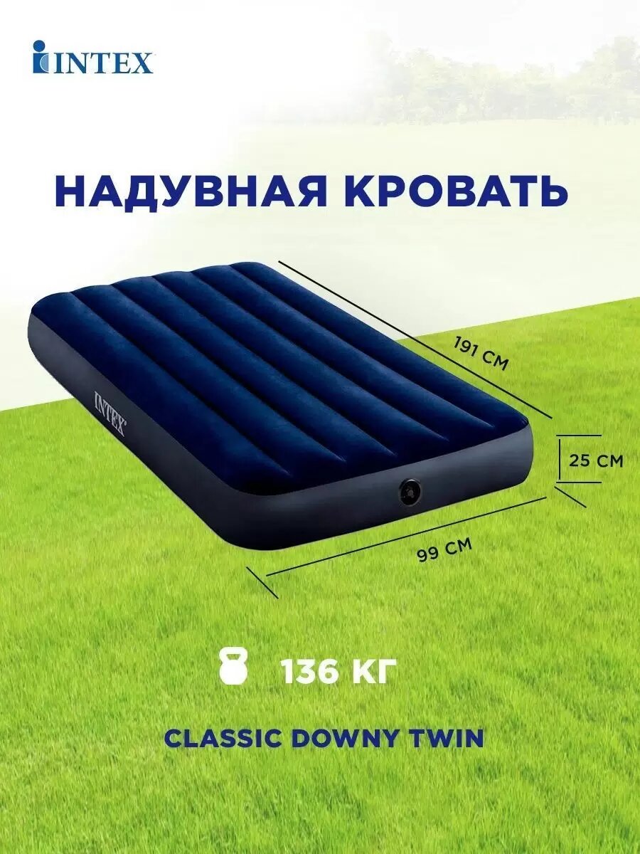 Intex Надувной матрас Classic Downy Airbed Fiber-Tech, 99х191х25см 64757