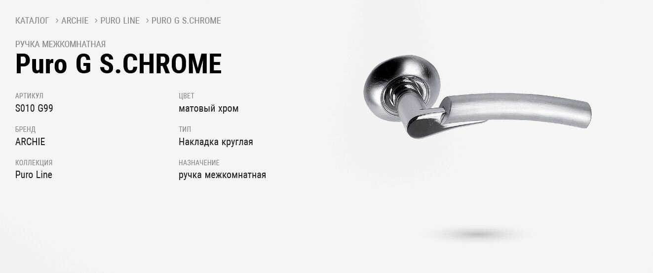 Ручка межкомнатная ARCHIE S010 G99 Puro Line, матовый хром