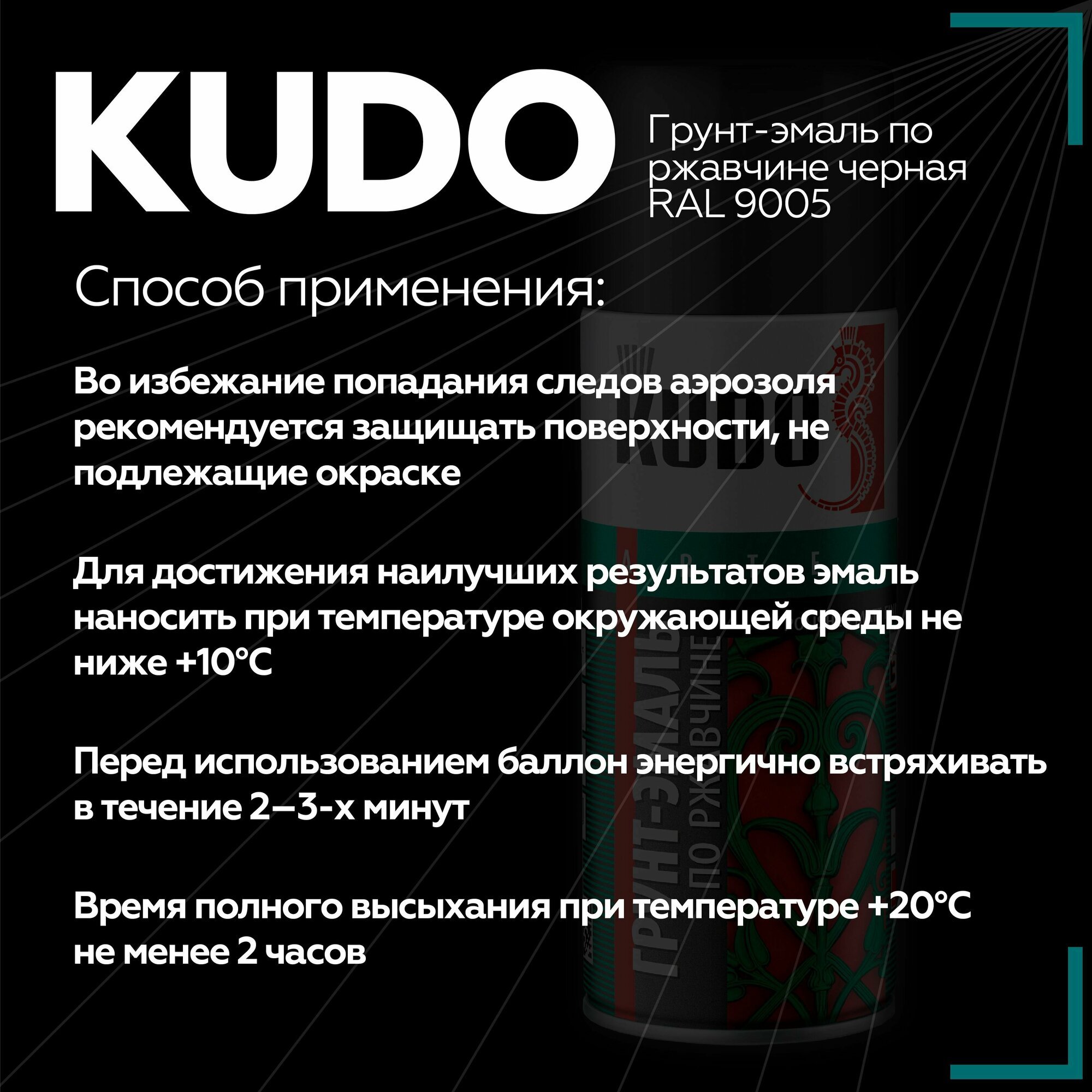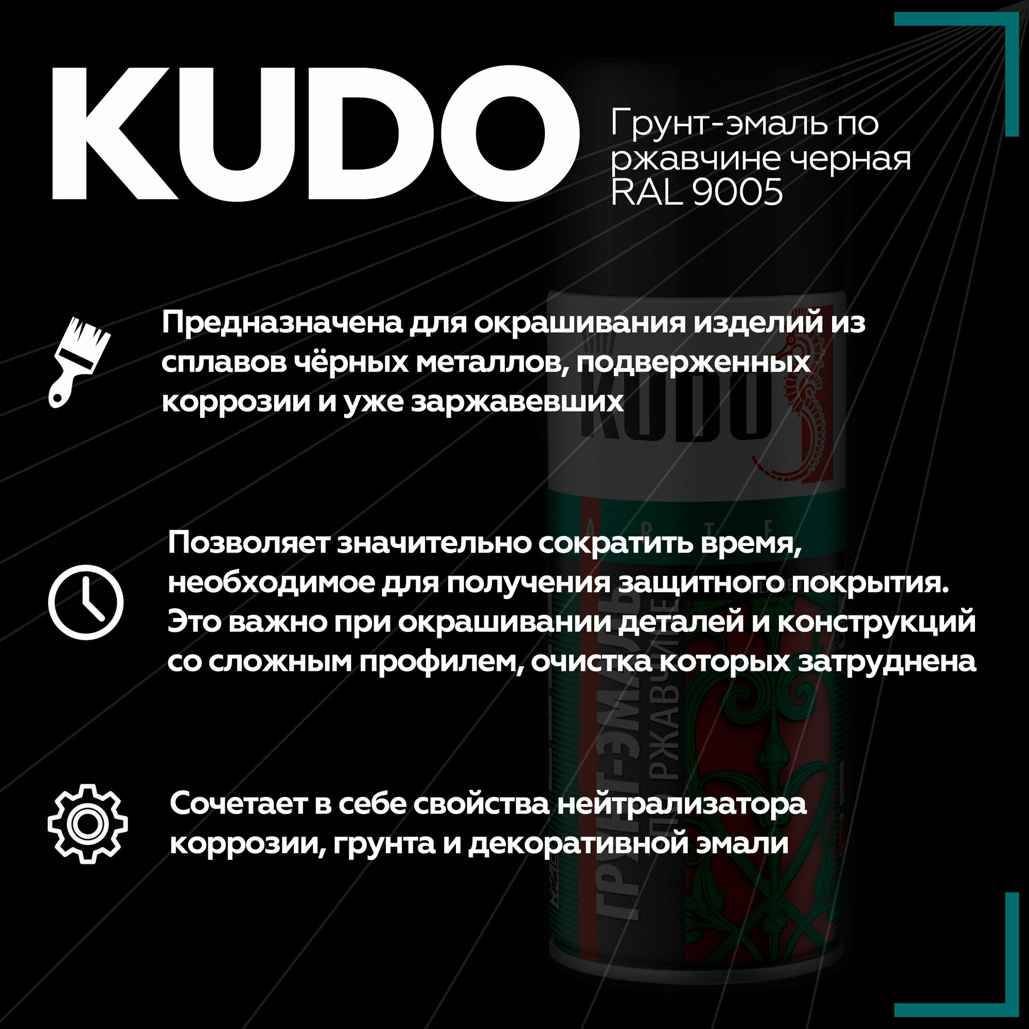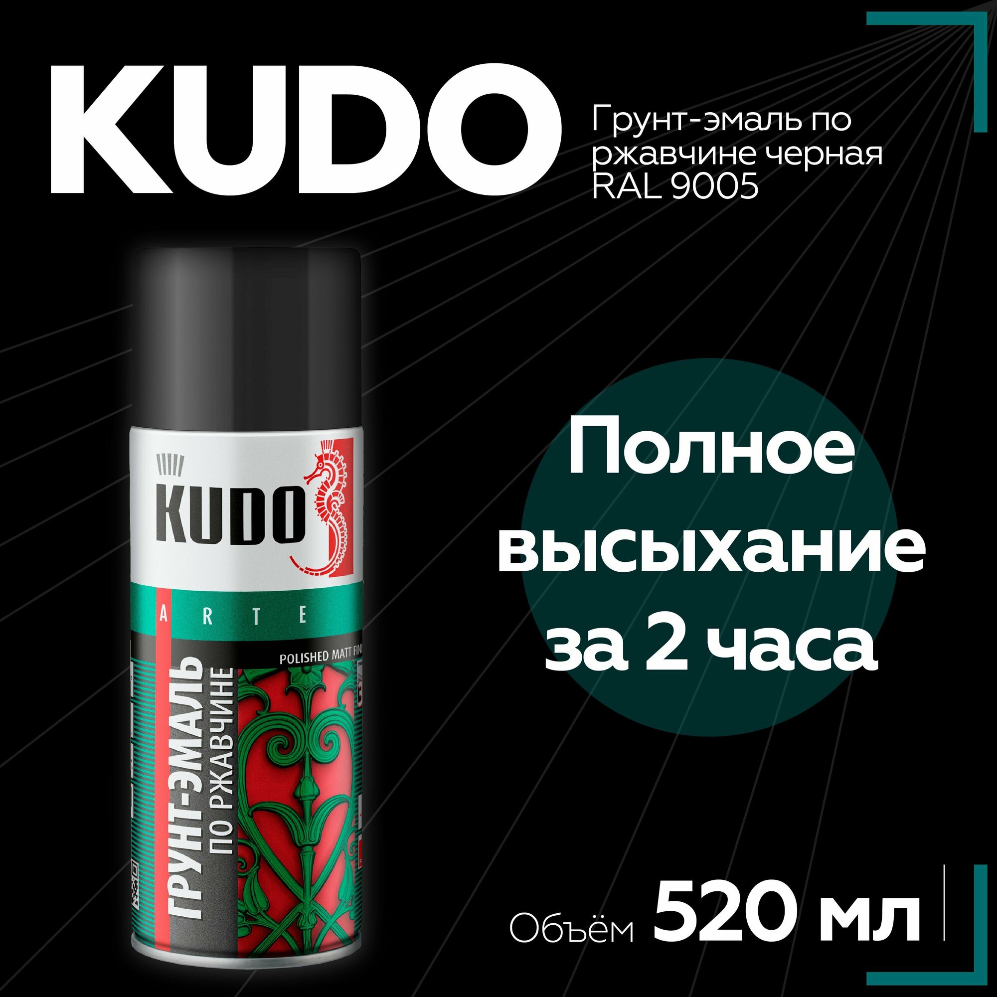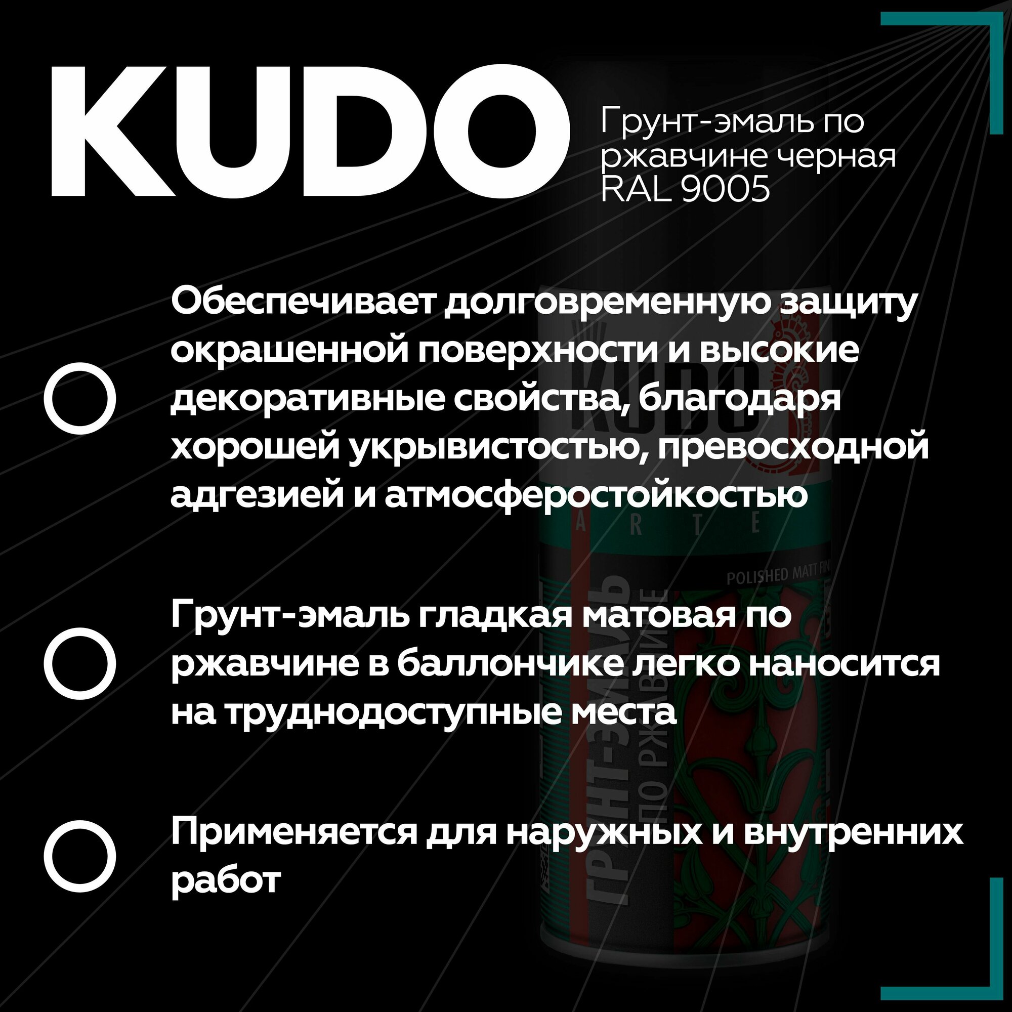 Купить KUDO грунт-эмаль по ржавчине гладкая матовая RAL 9005 черная аэрозоль 520 мл