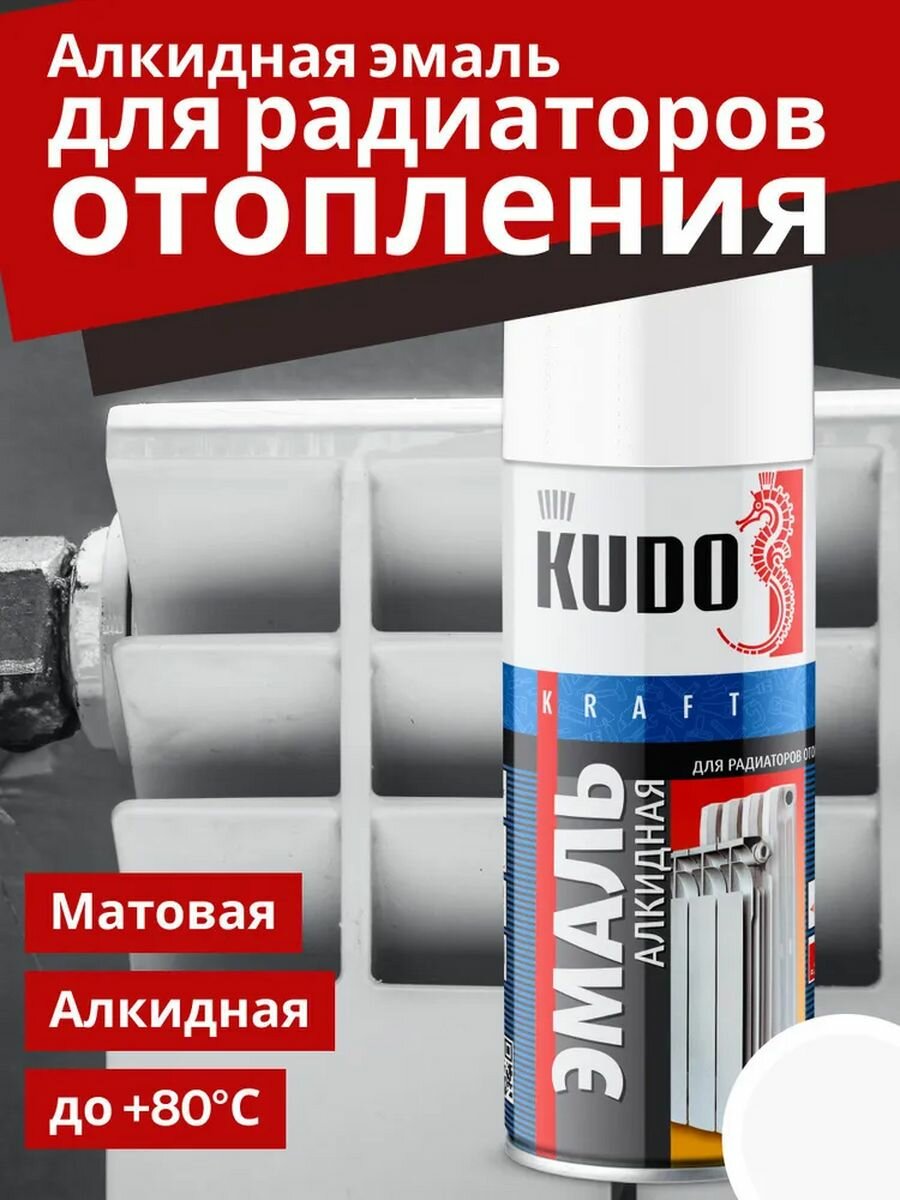 Купить KUDO эмаль на алкидной основе для радиаторов отопления матовая белая аэрозоль 520 мл