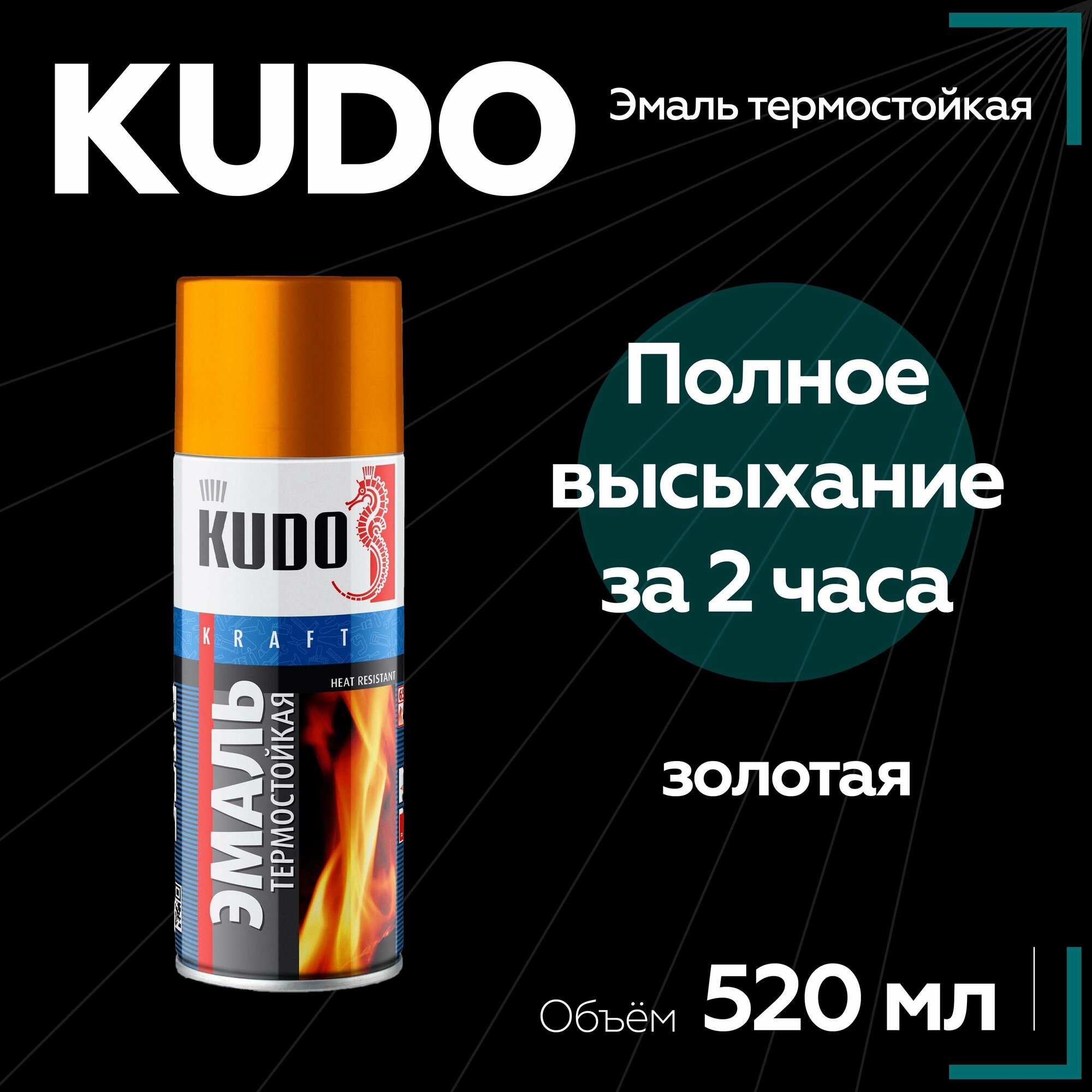 Эмаль Kudo Термостойкая золотая, 520 мл, KU-5007
