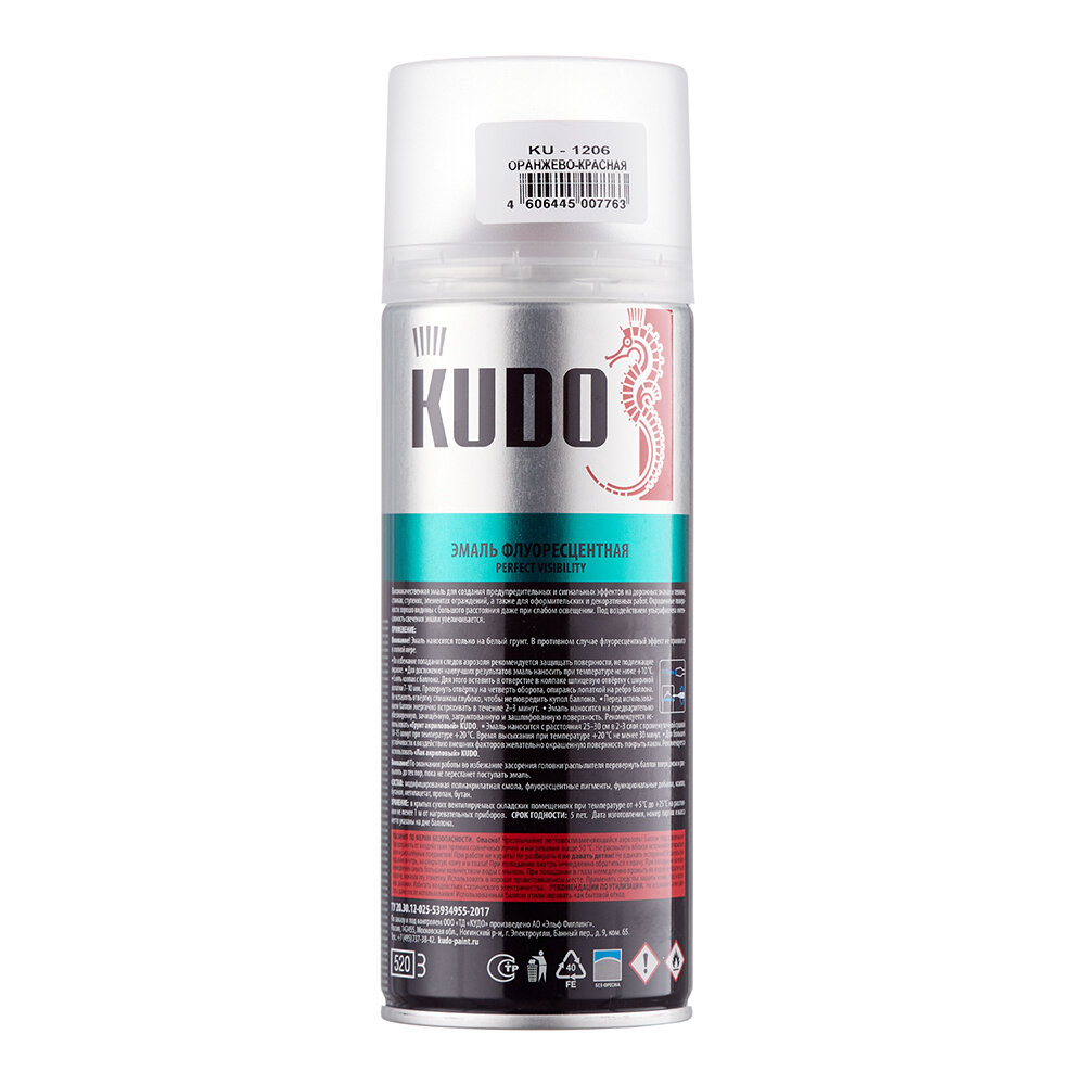 Кудо KU-1206 аэрозоль флуоресцентная оранжево-красная (0,52л) / KUDO KU-1206 Эмаль аэрозольная флуоресцентная оранжевая-красная (0,52л)