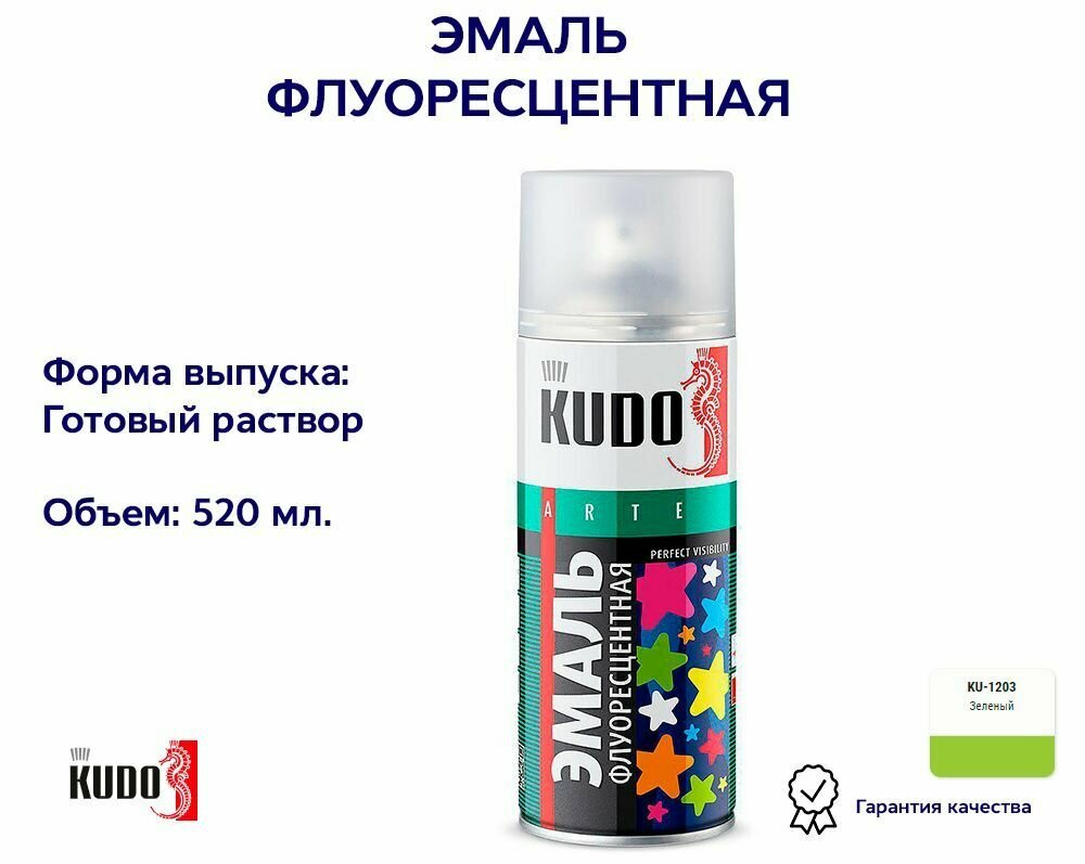 Краска Спрей Флуоресцентная Зеленая, 520 Мл. Kudo Ku-1203 Kudo арт. KU1203