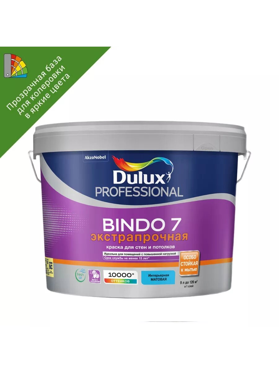 Краска DULUX BINDO 7 экстрапрочная для стен и потолков, матовая, бесцветная, База BC 2,25