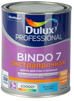 Краска для стен и потолков Dulux Professional Bindo 7, латексная экстрапрочная, матовая база BW 1 л.