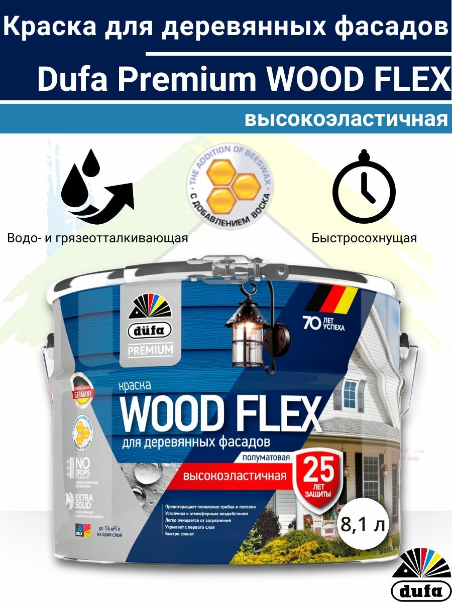 DUFA Premium Краска в/д WOODFLEX для деревянных фасадов база 3, 8,1л Dulux