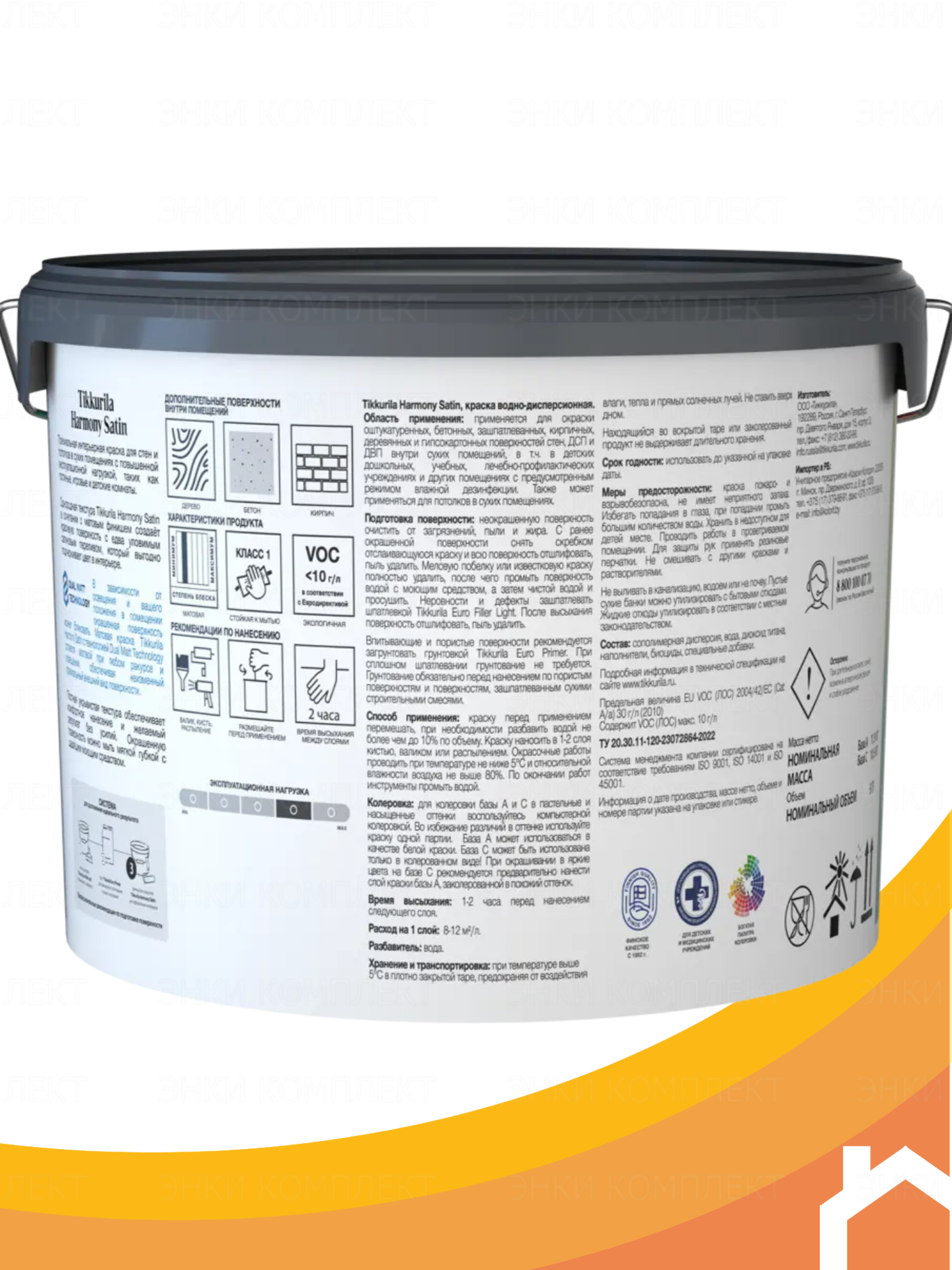 Купить Тиккурила Гармония Сатин база А белая краска интерьерная (9л) / TIKKURILA Harmony Satin base A краска для стен и потолков экологичная матовая (9л)