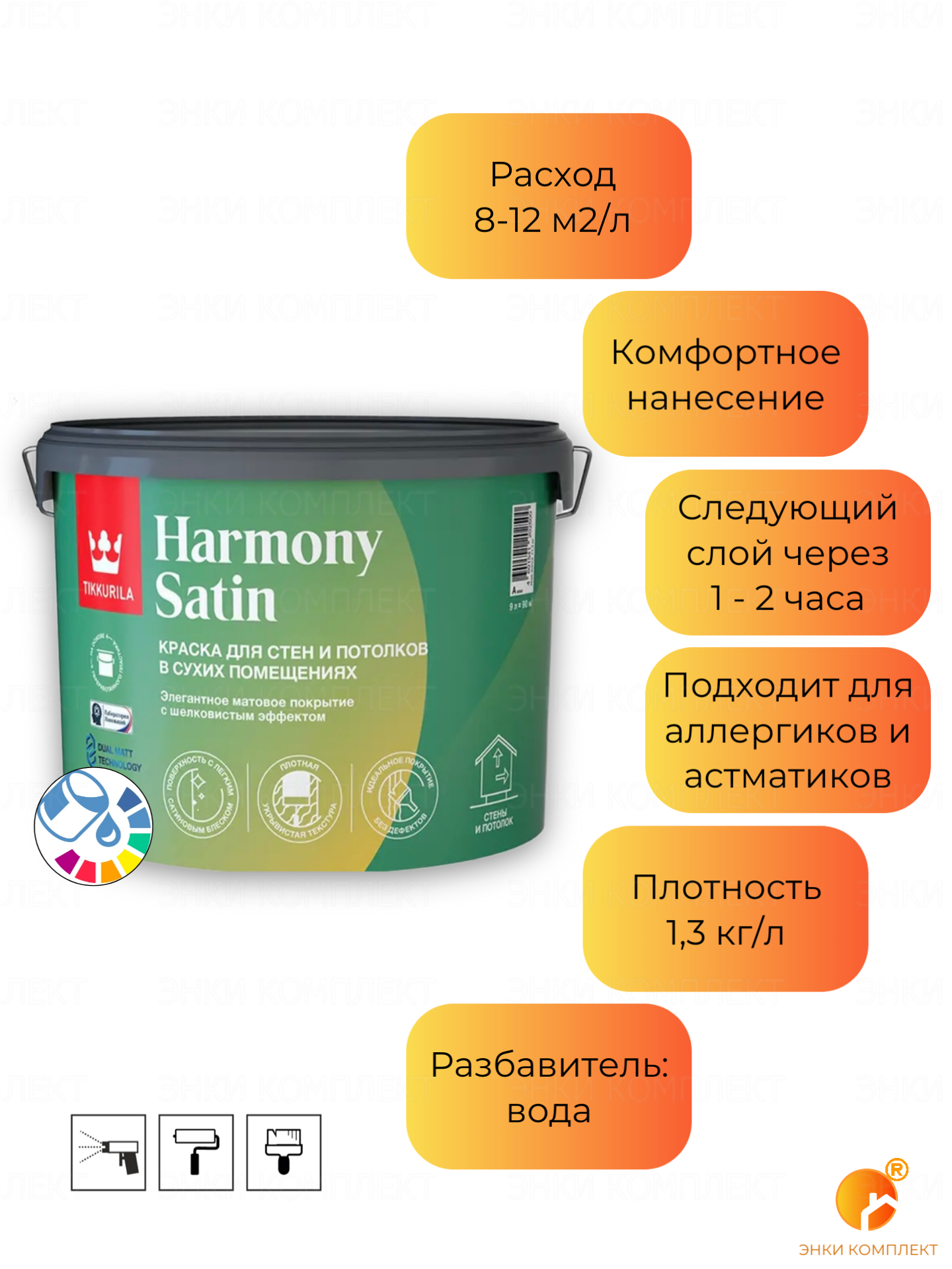 Tikkurila Harmony Satin (Joker) / Тиккурила Гармония Сатин матовая, экологичная краска интерьерная 9л