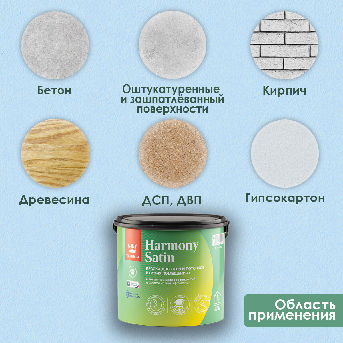 TIKKURILA Harmony Satin (Joker) краска для стен и потолков акриловая, 1 класс, матовая база А (0.9 л)