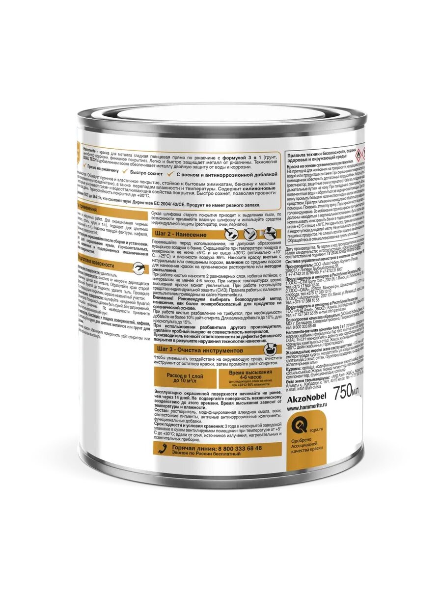 Краска гладкая Hammerite Хаммерайт глянц.черн. (0,75л) Т