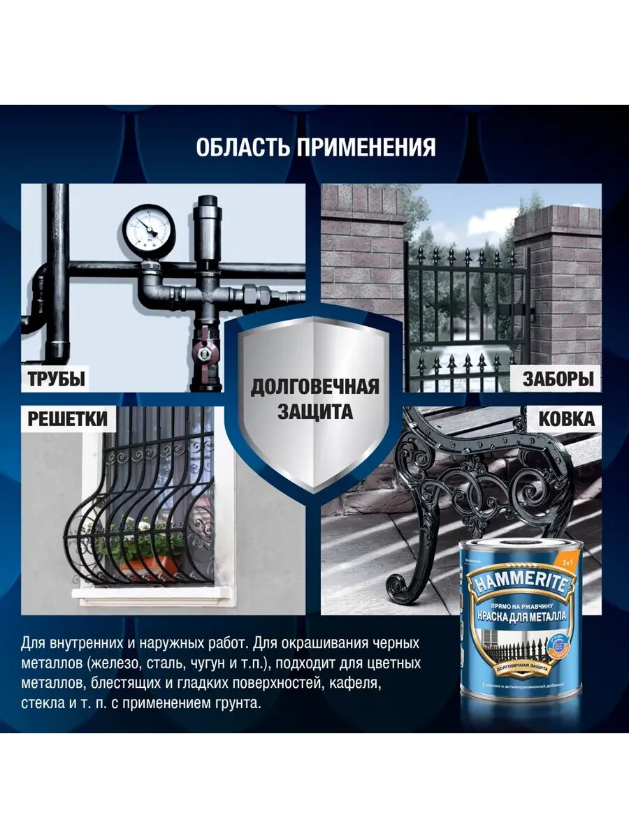Краска для металла 3 в 1 прямо на ржавчину Hammerite молотковая (2л) черный RAL9005