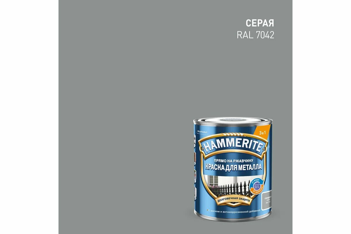HAMMERITE краска для металла прямо на ржавчину глянцевая RAL 7042 серый 2 л_new