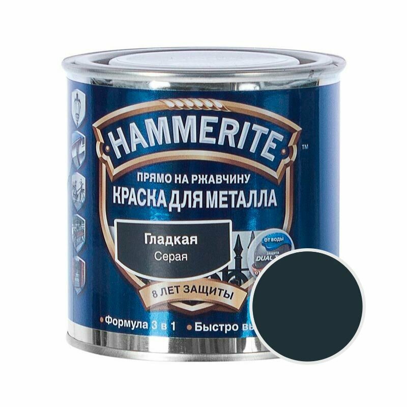 Хаммерайт краска по ржавчине темно-серая гладкая (750мл) / HAMMERITE краска 3в1 на ржавчину темно-серая гладкая глянцевая (750мл)