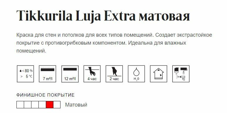TIKKURILA Luja Extra 7 краска для влажных помещений антигрибковая, акриловая, матовая, база А (0.9 л)