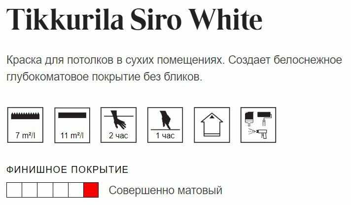 TIKKURILA SIRO WHITE краска для потолка антибликовая глубокоматовая (0,9л)