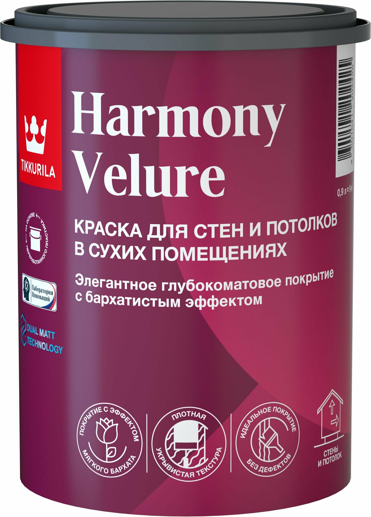 TIKKURILA HARMONY VELURE (Harmony) краска для стен и потолков акриловая глубокоматовая база А (0,9л)