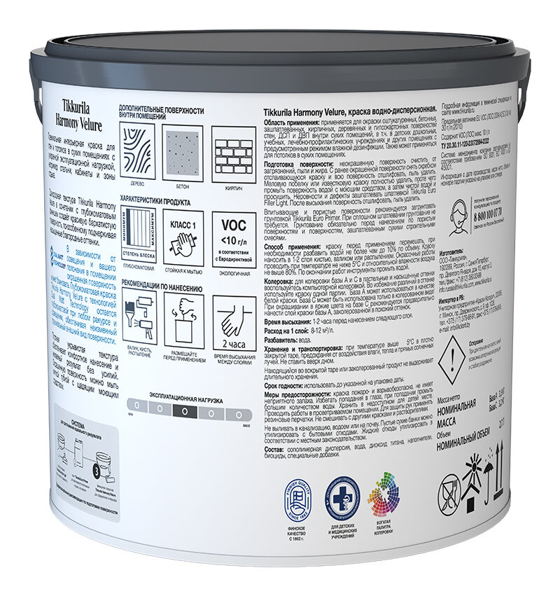 TIKKURILA HARMONY VELURE (Harmony) краска для стен и потолков акриловая глубокоматовая база А (0,9л)
